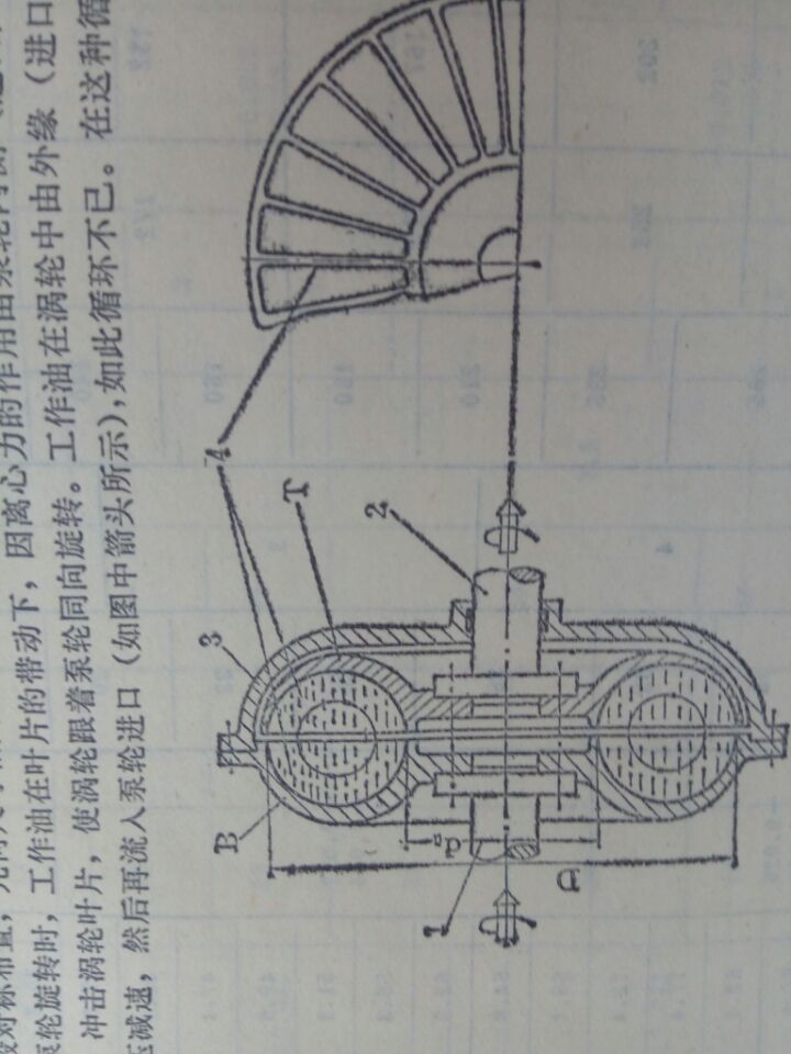 液力聯(lián)軸器傳動(dòng)原理由主動(dòng)軸1,泵輪B渦輪T,從動(dòng)軸2,和防止漏油的轉(zhuǎn)動(dòng)外殼3等主要部件組件。泵輪和渦輪一般對(duì)稱布置,幾何尺寸相同,在輪內(nèi)組裝許多徑向輻射葉輪片4.工作時(shí),在耦合器中充以工作油。當(dāng)主動(dòng)軸帶動(dòng)泵輪旋轉(zhuǎn)時(shí),工作油在葉片的帶動(dòng)下,因離心力的作用由泵輪內(nèi)側(cè)流向外緣,形成高壓高速液流,沖擊渦輪葉片,使渦輪跟著泵輪同向旋轉(zhuǎn)。工作油在渦輪中由外緣流向內(nèi)側(cè) 流動(dòng)過(guò)程中減壓減速,然后在流入泵輪進(jìn)口如此循環(huán)不已,在這種循環(huán)流動(dòng)過(guò)程中,泵輪把輸入機(jī)械功轉(zhuǎn)換為工作油的功能和升高。